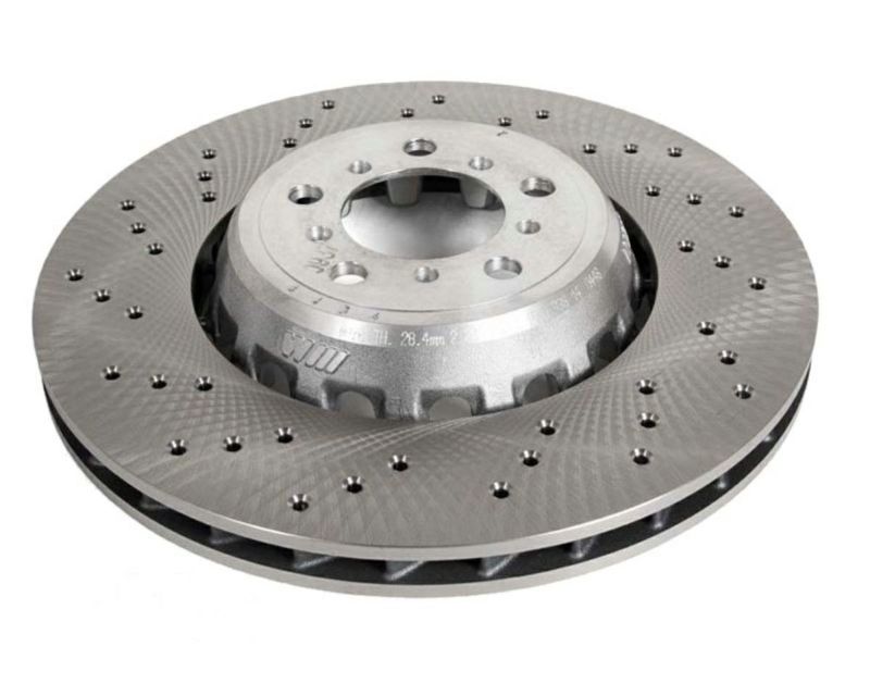 BMW純正のフロントブレーキローター(左側)です。 特徴: ・BMW純正品 ・380 x 30mm ・ドリルドサーフェス ・カーブベーン ・左側のみ *カーボンセラミックブレーキ(CCB)は適合いたしません。予めご了承ください。