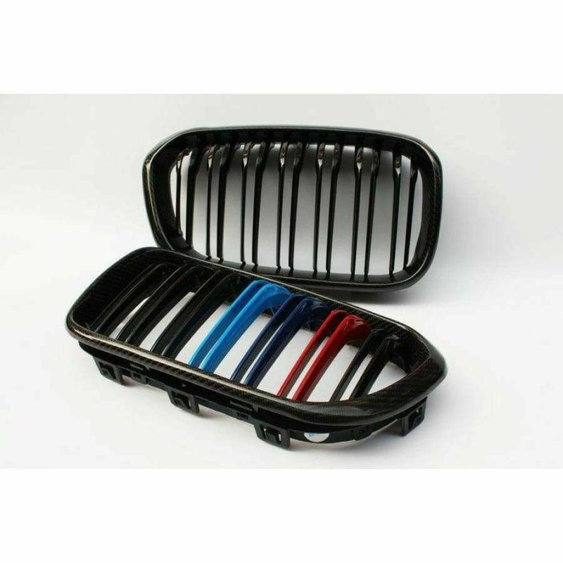 12TTT"BMW 2 SERIES/M2 (F22/F87) TRI-COLOUR M STYLE CARBON FIBRE FRONT GRILLES"
