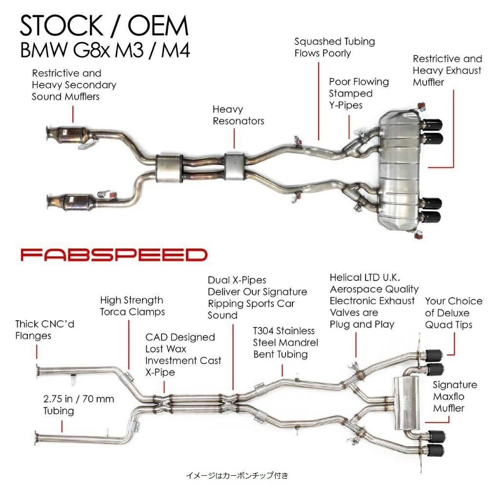 他の画像を見る 【Fabspeed】Xパイプ バルブトロニック マフラーシステム(カーボンチップ) BMW M3/M4(G80/G82) 商品番号 FS-BMW-G8X-VLVMPCF FS-BMW-G8X-VLVMPCF なお、12FAB"FS.BMW.G8X.VLVMPCF" 4895 販売価格 ¥ 1,101,280 税込 SALE価格 ¥ 1,101,280 税込 BMW M3(G80) 21- BMW M4(G82) 21- 1~2ヶ月 カートに入れる お気に入りに登録する