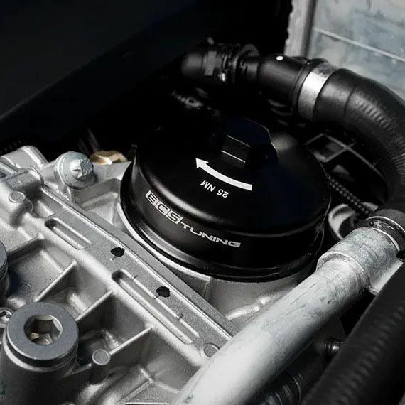 ECS TuningのBMW N系エンジン搭載車用 ビレットアルミニウム製 オイルフィルターハウジングキャップです。
