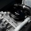 純正のプラスチック製キャップから、耐久性が高くエンジンベイの外観を向上させる魅力的なアルミニウムキャップへアップグレード。