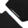 トリコロールカラーの"///M PERFORMANCE"ロゴのワンポイントにレザーパイピングの縁取りがなされた、スポーティーでラグジュアリーなイメージのフロアマットは、グリップにも優れています。