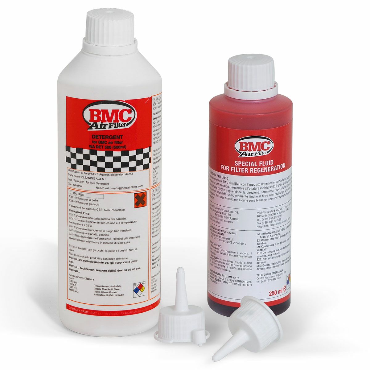 BMCの各メーカー各車種用 エアフィルター クリーニングセット(フィルターオイルボトル&クリーナー)です。 BMC製フィルターは工場出荷時にオイルが塗布されています。 メンテナンスの時期がきたら専用クリーナーを用いて洗浄し専用オイルを塗布することで、何度でも再使用できます。 BMCクリーニングセット WA250-500 は、フィルタークリーナー(500ml)とフィルターオイルボトル(250ml)で構成されています。
