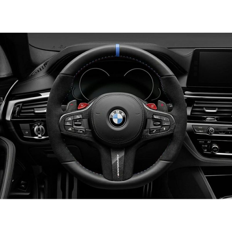 レザーとアルカンターラで覆われたステアリングホイールと"///M PERFORMANCE"ロゴ入りのカーボンカバー、そしてカーボンシフトパドルがX3 F97/X4 F98のコクピットをスポーティーに彩ります。