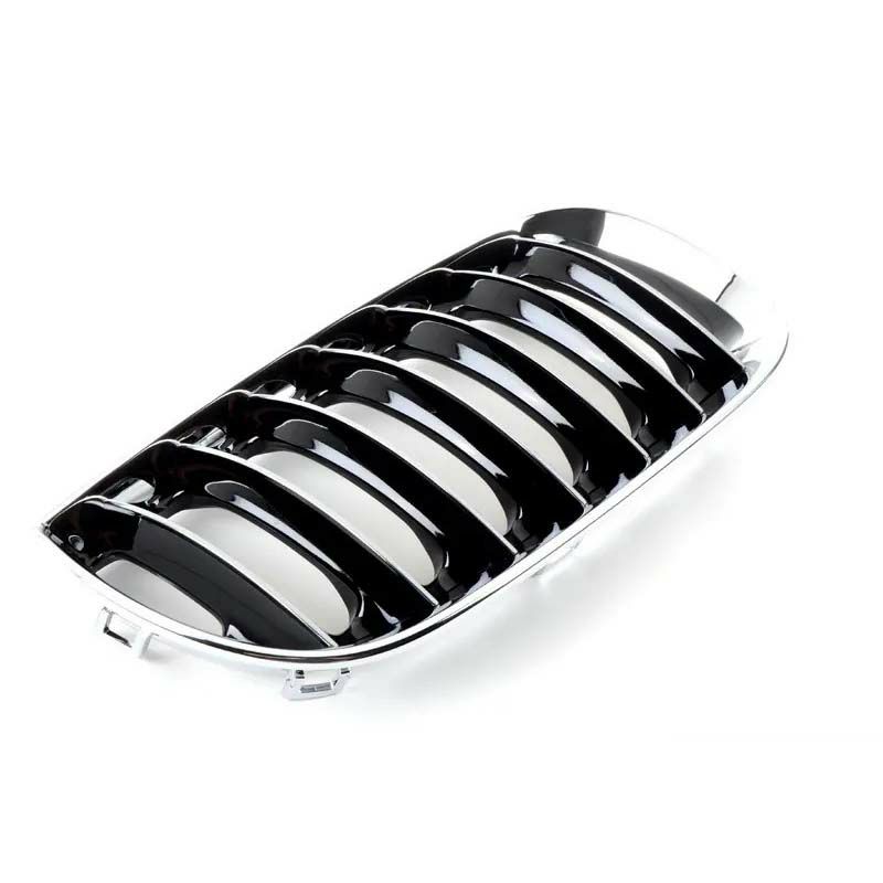 BMW純正のキドニーグリル(右)です。 BMW E83型X3の前期モデルに適合します。 フロント右側用。 全面クロームメッキのエレガントなスタイルが特徴的なフロントキドニーグリル。 フロントグリルは車体正面にあるため、飛び石等の影響を受けやすいパーツです。 塗装が剥がれたり、各部に傷がついてしまったグリルは交換がおススメです。