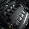 カスタムカーらしさを高めることのできる特徴的なカーボン・エンジンカバー。