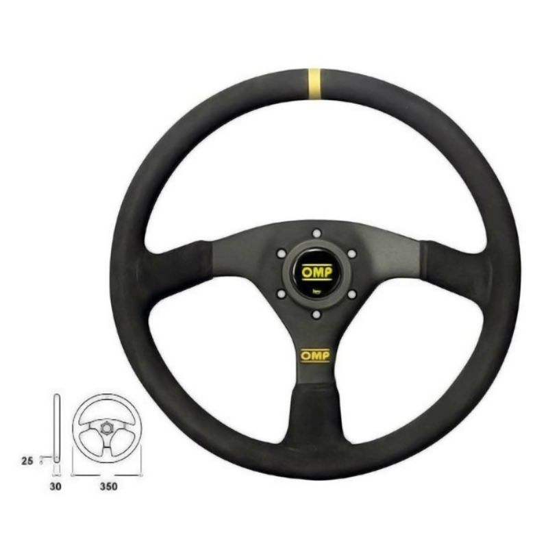 OMPのVelocitaステアリングホイールです。 〇主な特徴 ・アルミ&スチール製 ・ホーンボタン付き ・グリップ部はブラックスエード仕上げ ・直径:350mm ・グリップサイズ:オーバル30x25mm。