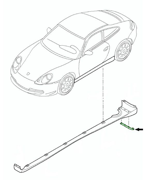 ポルシェ 996(911)用 ポルシェ純正 左サイドスカート ラバーリップシールです。