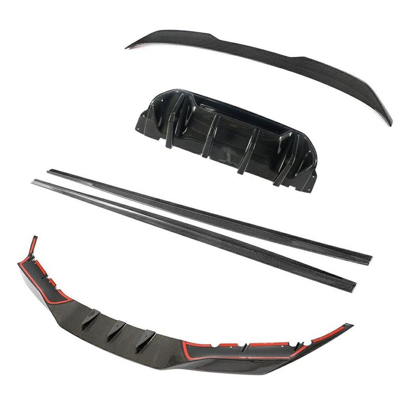 スポーツセダンをアグレッシブに仕立てる、フロントスプリッター・リアスポイラー・サイドスカート・リアディフューザーの高品質カーボン製フルキット。