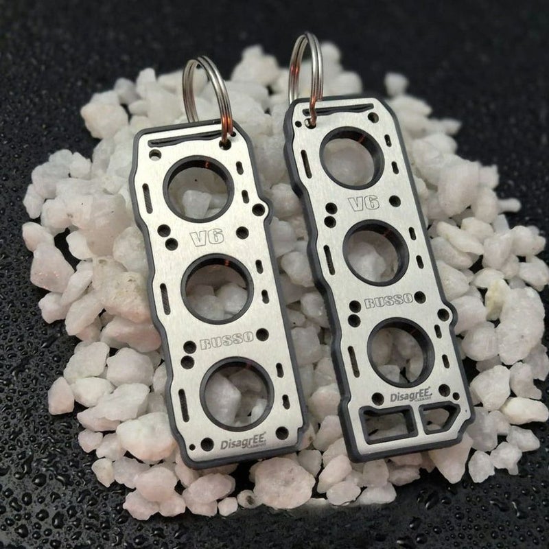 DisagrEEのアルファロメオ ブッソV6エンジンヘッドガスケットキーホルダーです。
