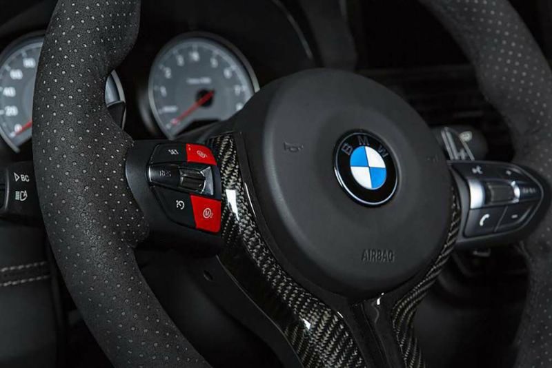 iNDのカラード"M"ボタン(レッド)です。 ステアリングホイールボタンの"M1"と"M2"を交換し、よりアグレッシブでスポーティなインテリアを演出します。