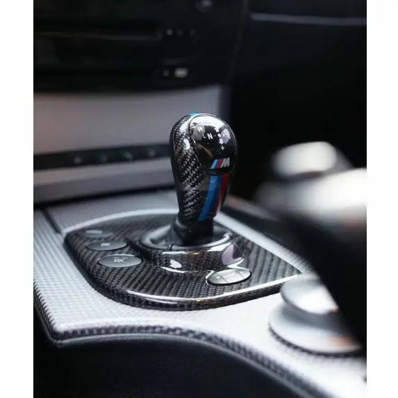 Dinmann製のBMW M3(E9x)/M5(E60)/M6(E63)用 カーボンファイバー DCTシフトレバートリムです。