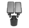 WeatherTechのCupFone Duo XL ラージサイズスマホ用スマホホルダーはほぼ全てのメーカー/車種/グレードのカップホルダーにフィットする、ドライバーとフロントパッセンジャー夫々専用のホルダーを備えた、画面の角度、向き共にアジャスタブルなハンズフリーホルダーです。 フィットメントの構造はロシア民芸品のマトリョーシカのような5重の入れ子式。カップホルダーのサイズにフィットするカップを選び、ご使用いただきます。また、この構造故に、車以外のカップホルダーにも使用可能です。 双方のホルダーの2 7/8~4 1/8インチ (約7.3~10.4cm)でアジャスタブルな幅、5/8インチ(約1.58cm)の厚さのホルダー部分は多くの最新モデルスマホや厚めのスマホカバーに適合します。 Made in USA ・サイズ: 幅 2 7/8~4 1/8インチ (約7.3~10.4cm)/厚 5/8インチ(約1.58cm) ・ノブカラー/素材:ブラック/プラスチック ・ノブ6個付き *関連商品:CupFoneスリーブ (商品番号 84CF22SS) *画像はイメージです