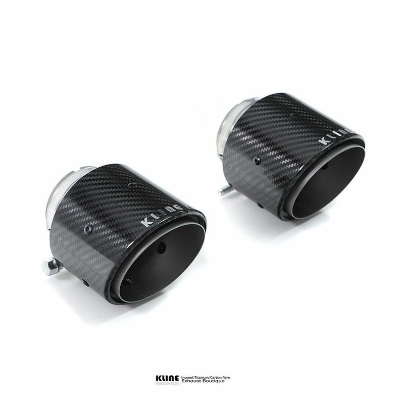 Kline Innovation製のポルシェ 718スパイダー/ケイマンGT4/GTS 4.0用 プリプレグカーボン マフラーチップです。