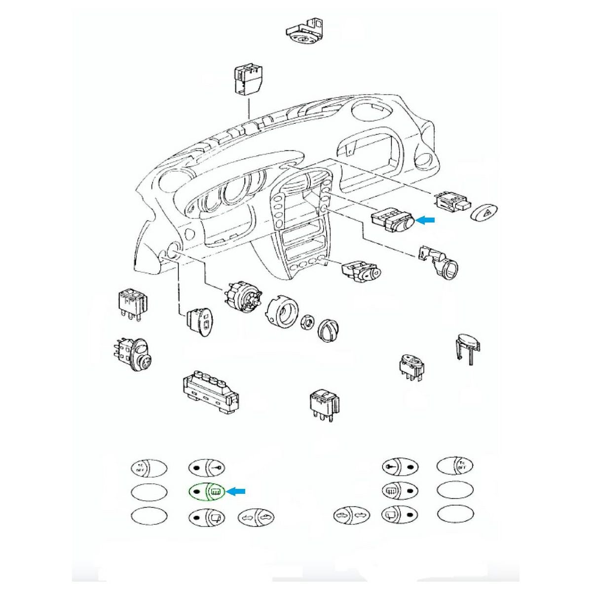 【ポルシェ純正】ポルシェ 996(911)/986ボクスター リア ウィンドウ/ドア ミラー ヒーター スイッチ LHD 99661313410A05