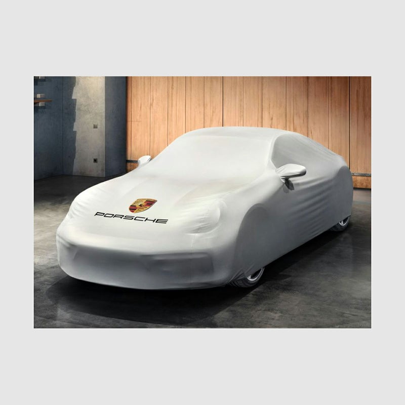 ポルシェ純正 ポルシェ 992(911) ターボ スポーツデザインPKG装備モデル用 カスタムフィット シルバー インドア カーカバーです。
