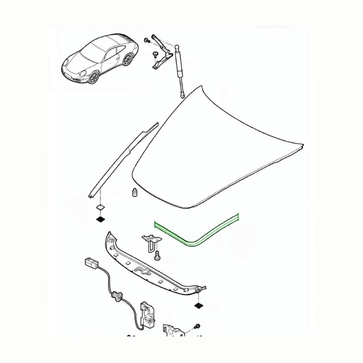 【ポルシェ純正】ポルシェ 997/987ケイマン・ボクスター ボンネット ガスケット 99751161101