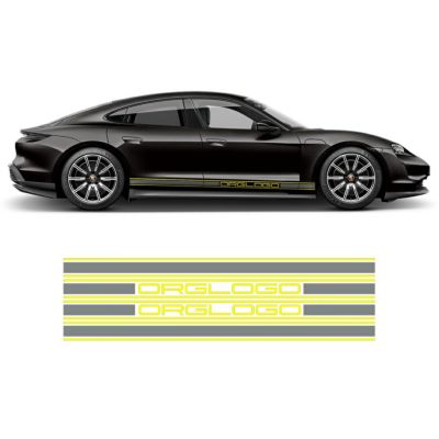 レビューを書く - ポルシェ タイカン カスタマイズ RACINGストライプ デュアルカラー サイド デカール セット | Auto-Parts